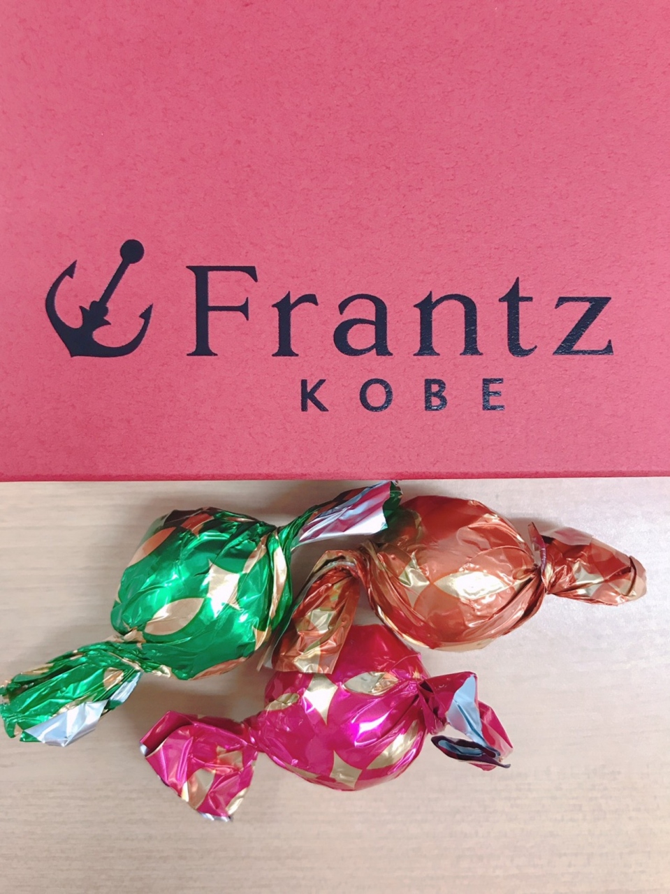 フランツと言えば神戸の有名なスイーツ屋さん、神戸らしくいかりのマークが目印だ。ボールのようにされたチョコレートの中にイチゴ味がくるまれている。チョコレートは普通のもと比べるとカカオの味が濃いように感じる。しかしそれがいちご味により中和されて引き立たれている
