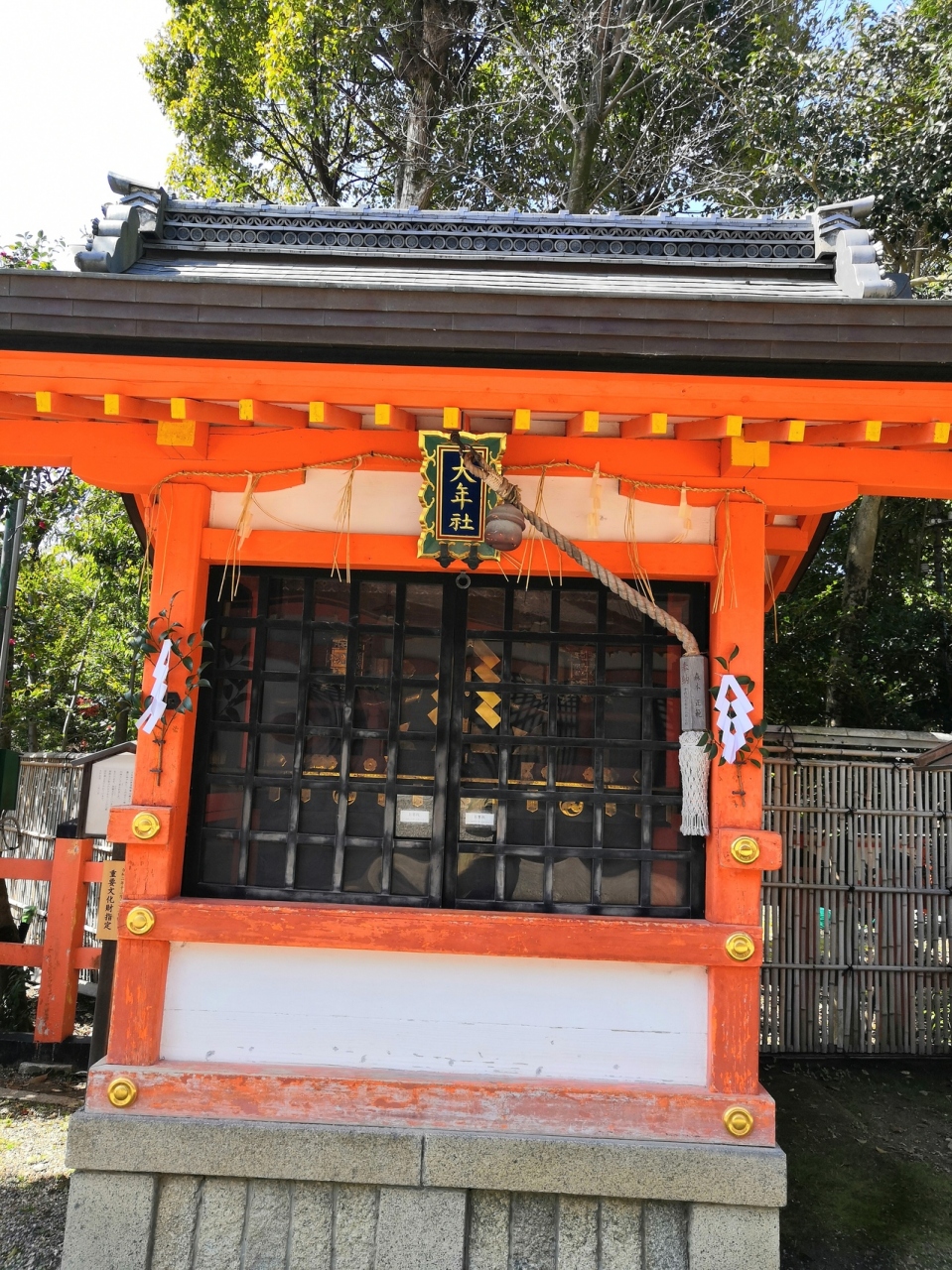 八坂神社の末社の一つで、本殿の西にあり、十社からすぐでした。穀物の神である大年神(おおとしのかみ)と農耕の神である巷社神(ちまたやしろのかみ)が祀られています。非常に大切な分野ですが、やや地味ですね。自分も少し農業をするのでしっかりお参りさせて頂きました。
