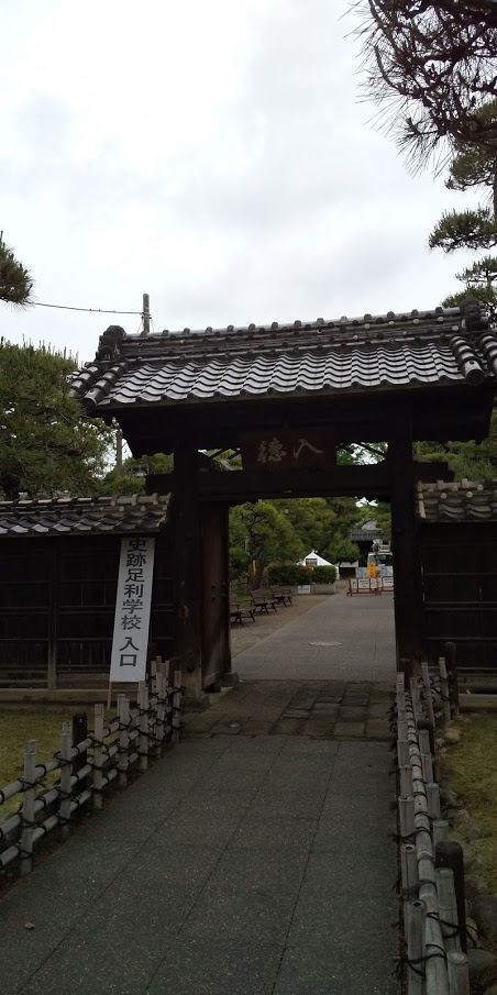 足利学校の敷地に入るにはここから入ります。正門のようなスクールゲートと言ったところ、立派な門構えで入徳と大きく表示があらり入って右側に事務所があり入場料金を払います。入る時も出るときもこちらからになりますから必ず通る門になります