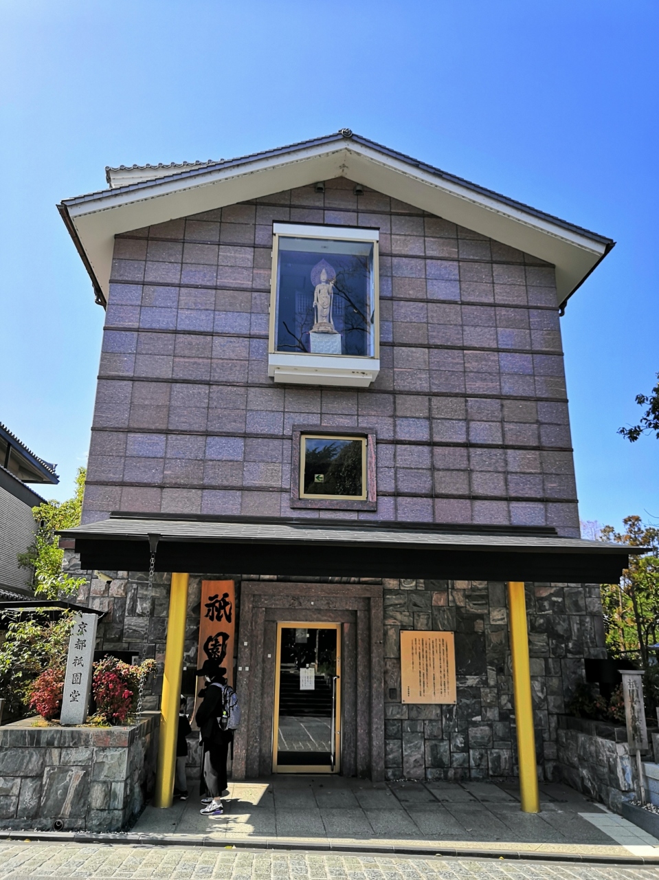 円山公園の南側にあります。近代的な感じの建物ですが、入り口右手には祇園女御供養塔が建てられていて、この付近には白河法皇の寵妃であった祇園女御の邸があったということです。ねねの道すがらに見るくらいで十分かな。