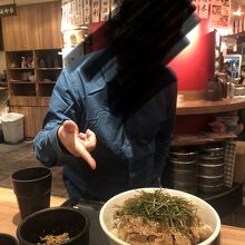 ボリューミーで歯ごたえのある蕎麦を楽しみました。友人と他のお店で食事をとった後に、酔い覚ましとして入店しました。お肉がたっぷり載っており、非常にお腹いっぱいになりました。噛み応えのあるおそばのそば粉配分については企業秘密とのことでした。