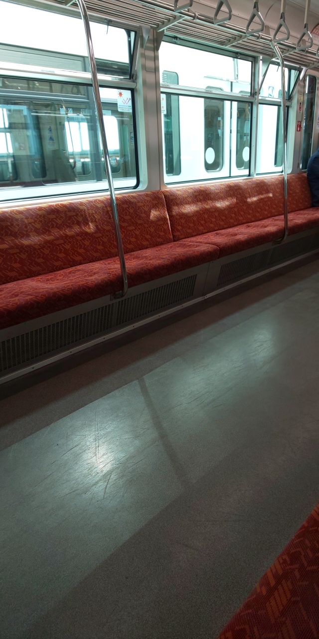 座席はかなりのロングタイプです。電車の座席では端っこに座りたい!という方は端っこ争奪戦は激戦になるかもしれません(笑)