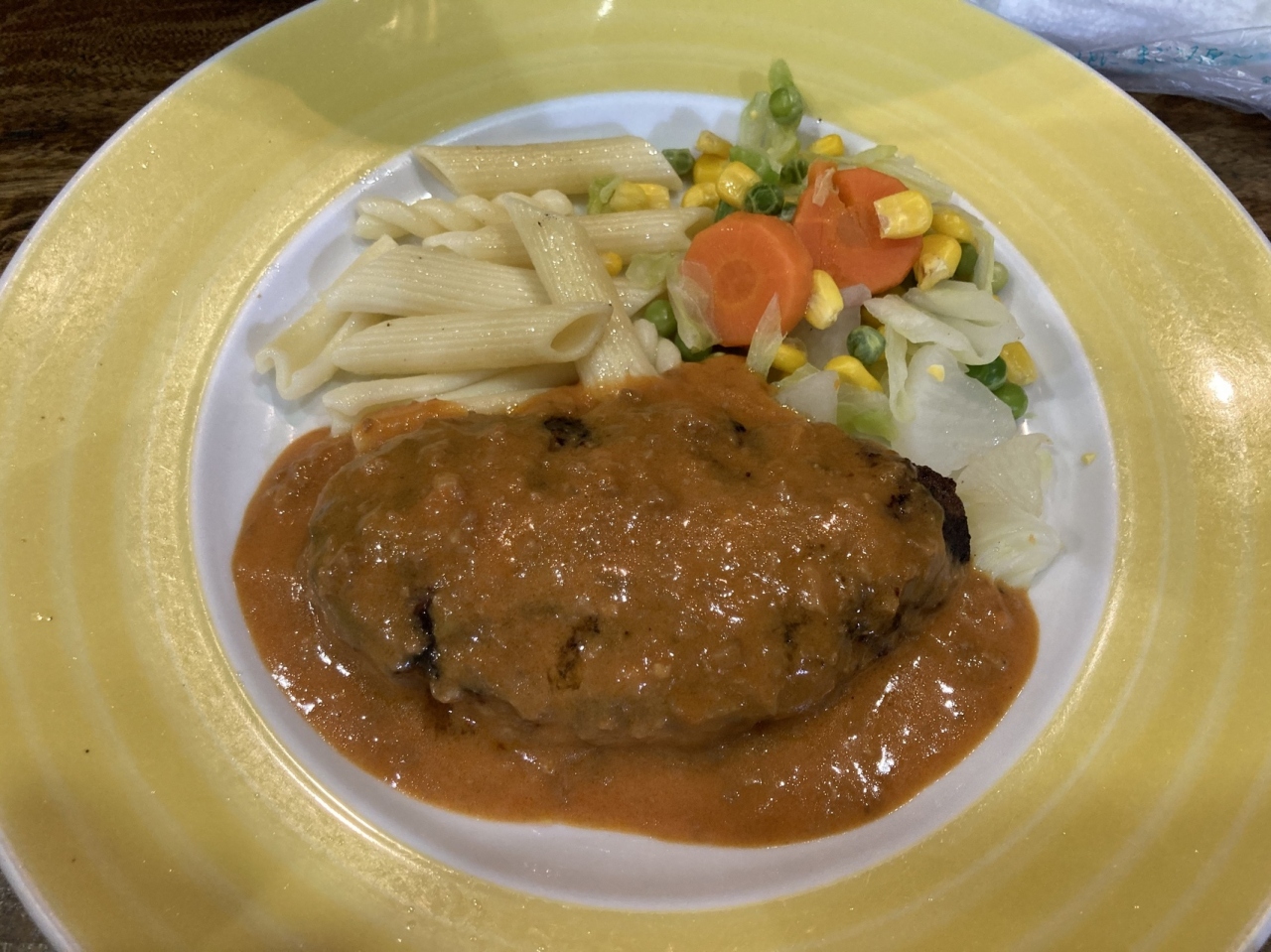 いつものランチを食べてきました。メニューは一つだけです。ニンニクの効いたドレッシングの豆腐サラダ、ふんわりジューシーなハンバーグ、デザートのプリンとコーヒーもついて千円です。コスパの良さも、おいしさも、ずっと変わりません。ずっと以前にはカレーやチキンソテーが登場していましたが、最近はハンバーグ一本です。ソースで変化をつけているようです。