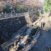 戦後石神井川の流路を改修した際にかつての渓谷を復活させようとできた公園のようです。日本の都市公園100選にもなっています。都電の走る国道122号の側からアクセスしましたが、けっこうな下り階段で歩きにくかったです。訪ねた季節のせいかもしれませんが、水量も少なく「親水」というイメージにはちょっと遠かったですね。きっと真夏に訪れたらひと息つける場所かもしれません。