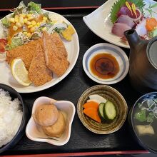 本土寺の参道近くにあります。カウンターとテーブル席、2階もあるようで、法事などで利用する方もいらっしゃるようです。ランチメニューが豊富で定食はどれもボリューミー。おなかいっぱいになりました。イカフライ定食を頼みましたが付属のお刺身や小鉢の煮物などでも結構お腹いっぱい。お得感があります。