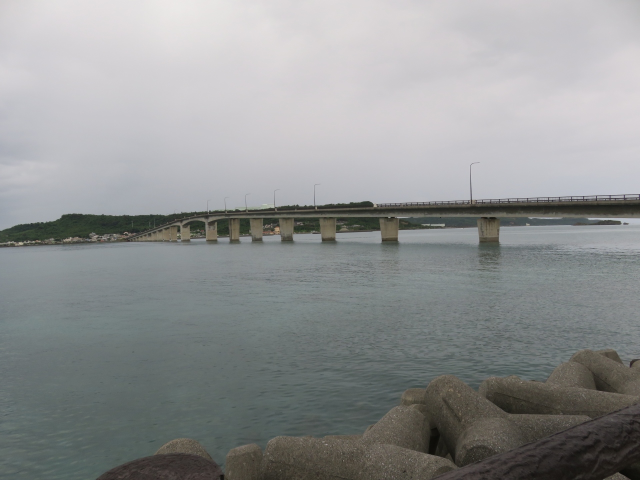 平安座島と浜比嘉島とを結んでいる橋です。歩いても渡れるし自転車でも渡っても気持ちがよいと思います。4度車で渡りましたが潮の満ち引きで橋から見える景色が随分違っていました。真っ青な海中道路がよいのであれば満潮に近い時間のほうがキレイな景色だとおもいます。
