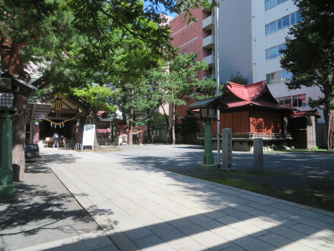 西8丁目駅からすぐの神社です。北海道の神社は、赤がよく使われているのですが、こちらも本堂の横に赤っぽい鳥居、そして境内に赤のお堂と、北海道の夏空に赤がよく映えています。こじんまりとした神社で、地域の鎮守様という雰囲気です。