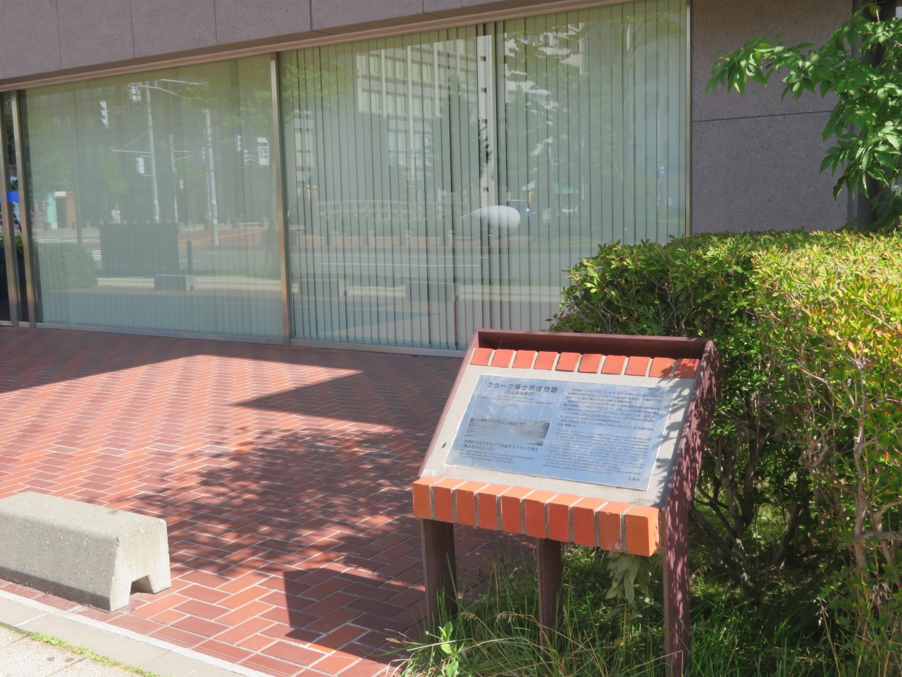 明治9年にクラーク博士は、札幌農学校初代共同としてアメリカからサッポロの地に赴任しました。宿舎は、こちらの案内板のある南2条東1丁目にあった開拓使本陣と呼ばれる建物でした。現在は、住友生命ビルの横に案内板が残るだけの寂しい場所になってます。