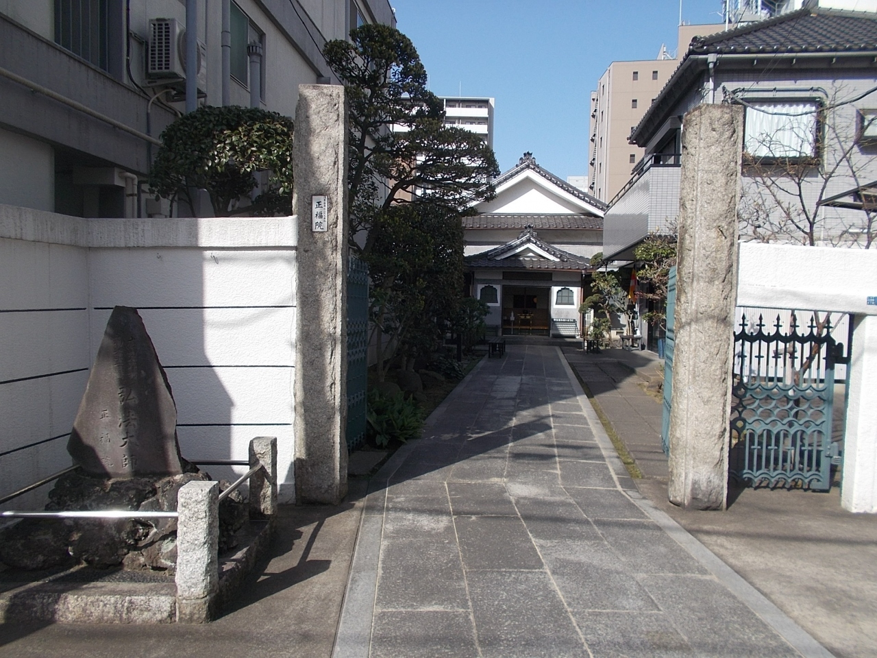 この正福院は浅草の元浅草にある寺で地下鉄東京メトロ銀座線稲荷町駅から南東のエリアにあります。この寺は17世紀初めに創建されて17世紀中ごろに今の場所に移築しています。真言宗智山派の寺です。門柱を入ると正面に本堂があります。木造漆喰作りです。本堂だけだなく他の建物と一緒です。
