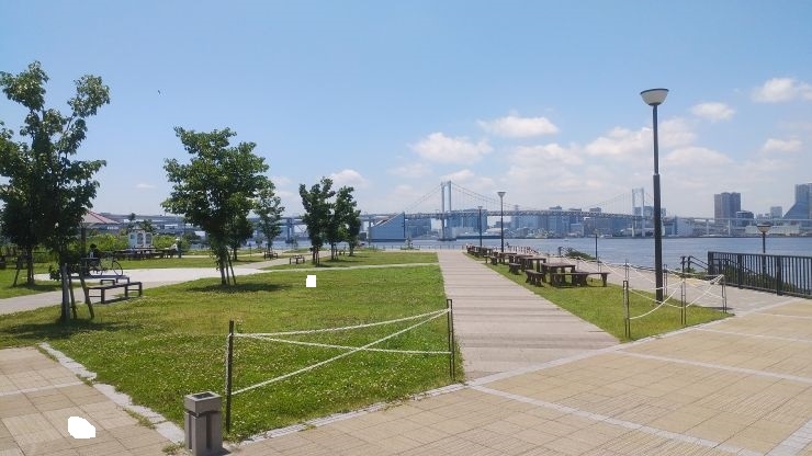 豊洲エリアの埋め立て地を海岸沿いに設けられた公園で延長約5キロほどの規模を誇る。