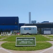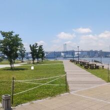 海岸風景を眺めながら、ところどころに撮影スポットが設定されていた。開放感のある公園で、場所により東京タワーや東京スカイツリーを眺めることもできた。