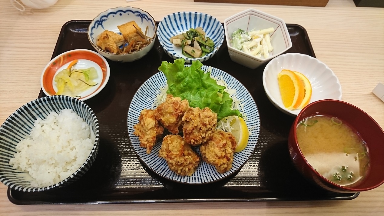江東区有明の新しい大型商業施設・有明ガーデンの5階レストラン街にある和食レストランです。ランチで鶏のこんがり黄金唐揚定食968円をいただきました。やや大きめの鶏唐揚げ5個の他に、マカロニサラダなどの小鉢3種類、お新香、味噌汁、サラダ、ご飯の付いた定食で、かなりのボリューム。味の付いた鶏唐揚げはジューシーで、とっても美味。満足のランチとなりました。ガッツリとランチを食べたい方におすすめです。