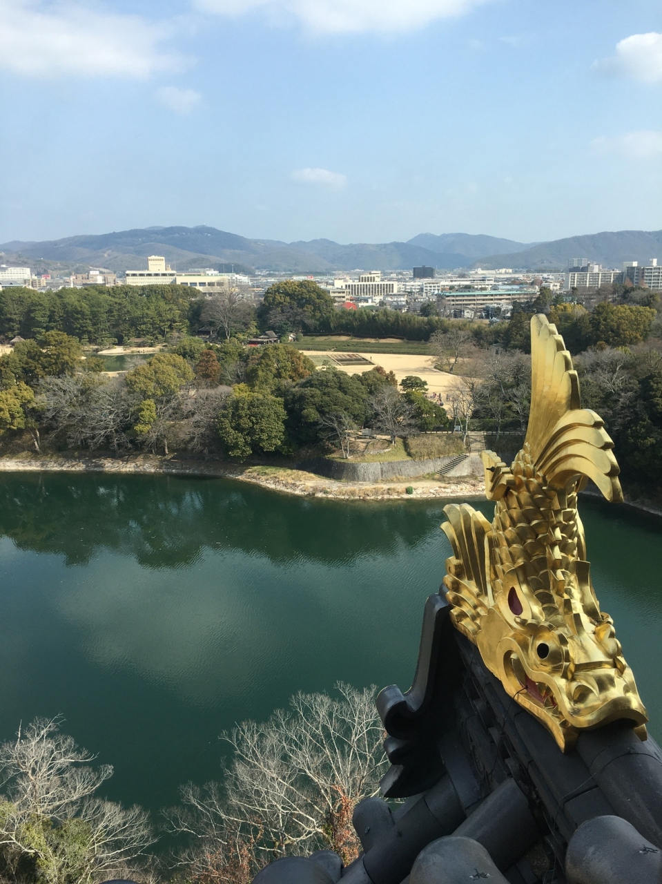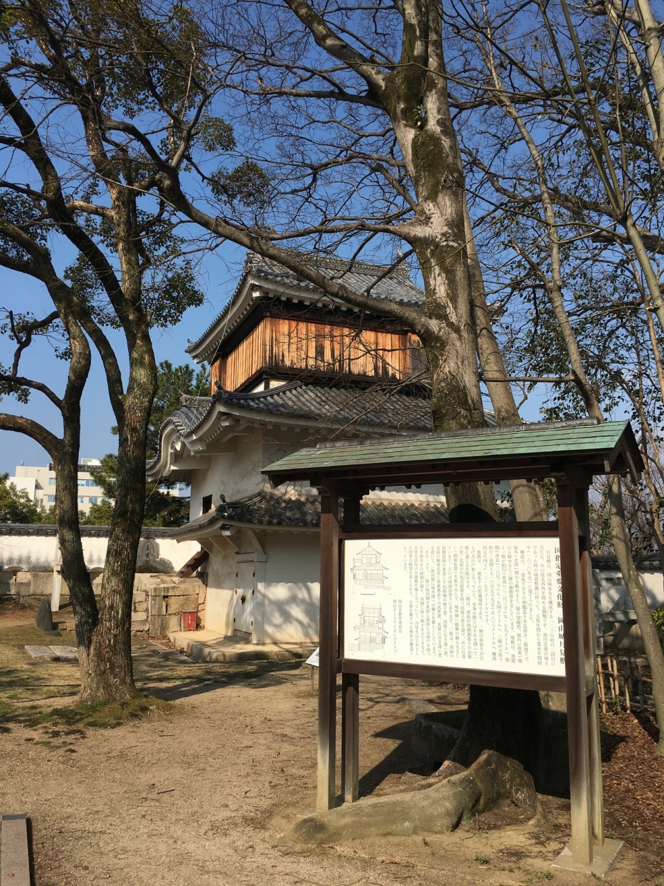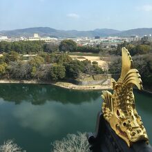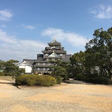 どっしりと構えた天守閣で山城ではなく、平地にありました。屋根には金色の鯱鉾があって、あまり見かけないような城の構えでした。天守閣からは岡山市内と山々が一望出来、礎石も残っていて、門や櫓ものいくつかあります。