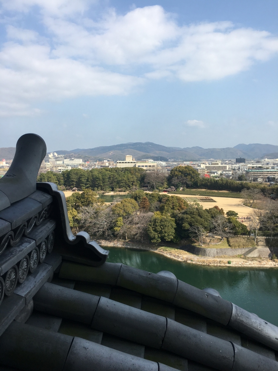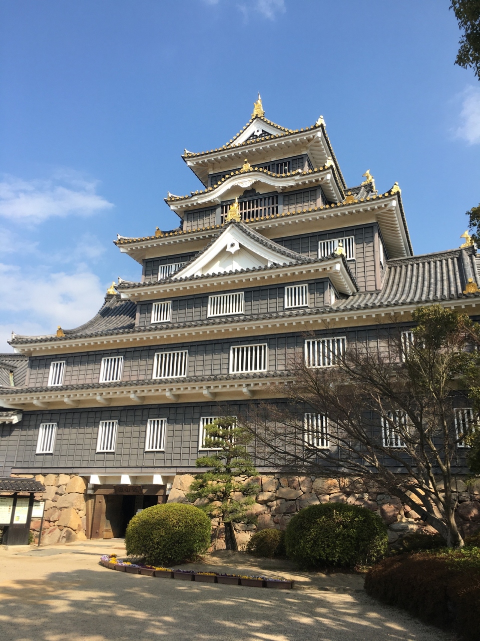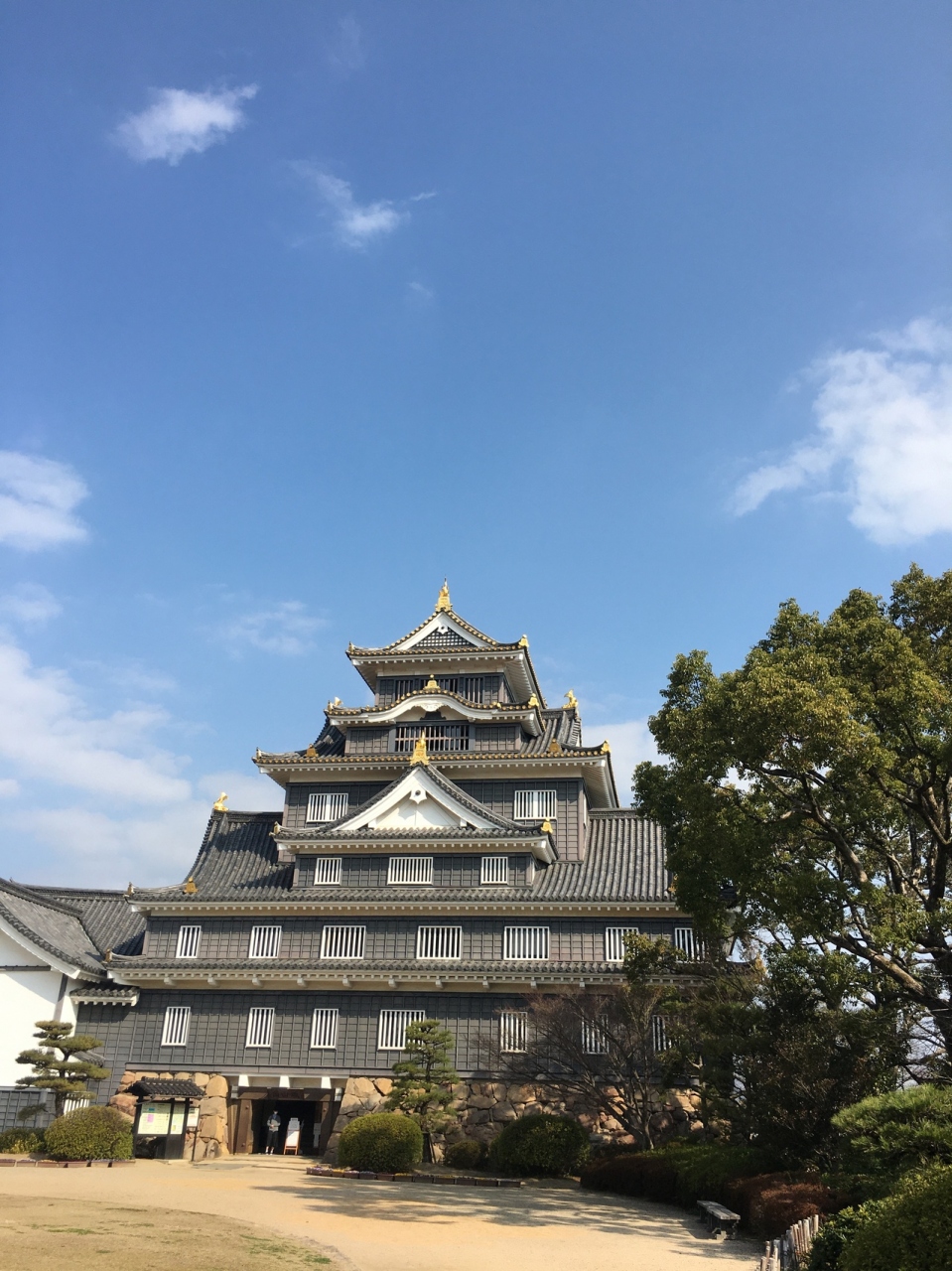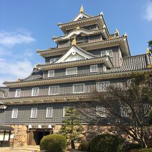 山城でないため、天守閣まで行くのが楽でした。中に入ると、明治初期の城の写真や瓦屋根等が展示しており、宇喜多秀家や小早川秀秋の甲冑も展示してありました。最上階に行くと旭川や岡山市内上見渡せ、展望の窓からは鯱鉾を近くで見ることが出来ます。