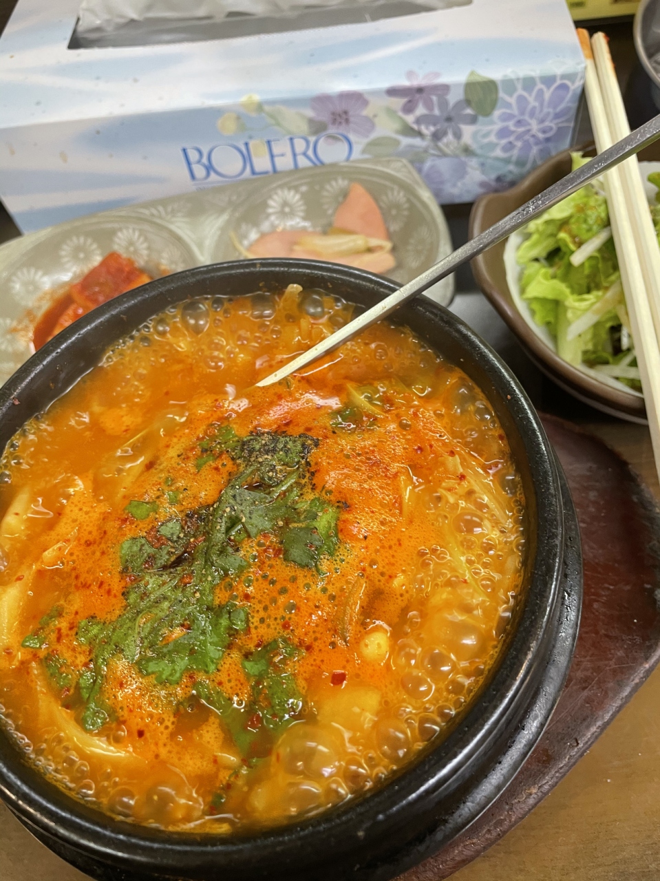かなり昔からある韓国料理店です。チェーン店みたいですがあまり見かけないチェーン店。店の中はカウンターと2階があります。ランチのメニューのたくさんありメインの料理以外に2種類のおかずがつきます。懐かしくおいしかった。