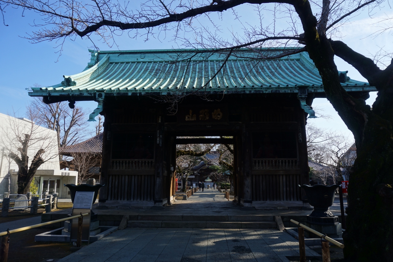 祐天寺 仁王門は、5代将軍綱吉の養女、竹姫が寄進した三間一戸の八脚門。屋根は切妻造、本瓦型の銅板葺で、この銅版の青が美しいですね。仁王像は、仏師、法橋石見作というのですが、運慶作と言われる持国天像・増長天像が安置されているのも見どころです。