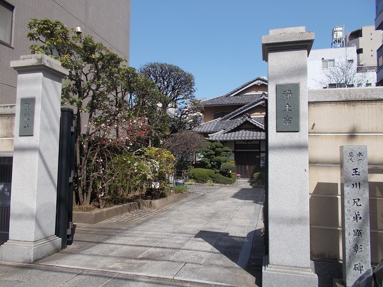 この聖徳寺は浅草の松が谷にある寺です。地下鉄東京メトロ銀座線稲荷町駅から北東に10分程度の場所にあります。この寺は浄土宗のものです。15世紀にはあったのです。その後徳川家康の関東入国にともない江戸に移築して17世紀中ごろの明暦の大火で今の場所にいつくしたのです。この寺の本堂前には神田上水の土木工事で貢献した玉川兄弟の墓があります。
