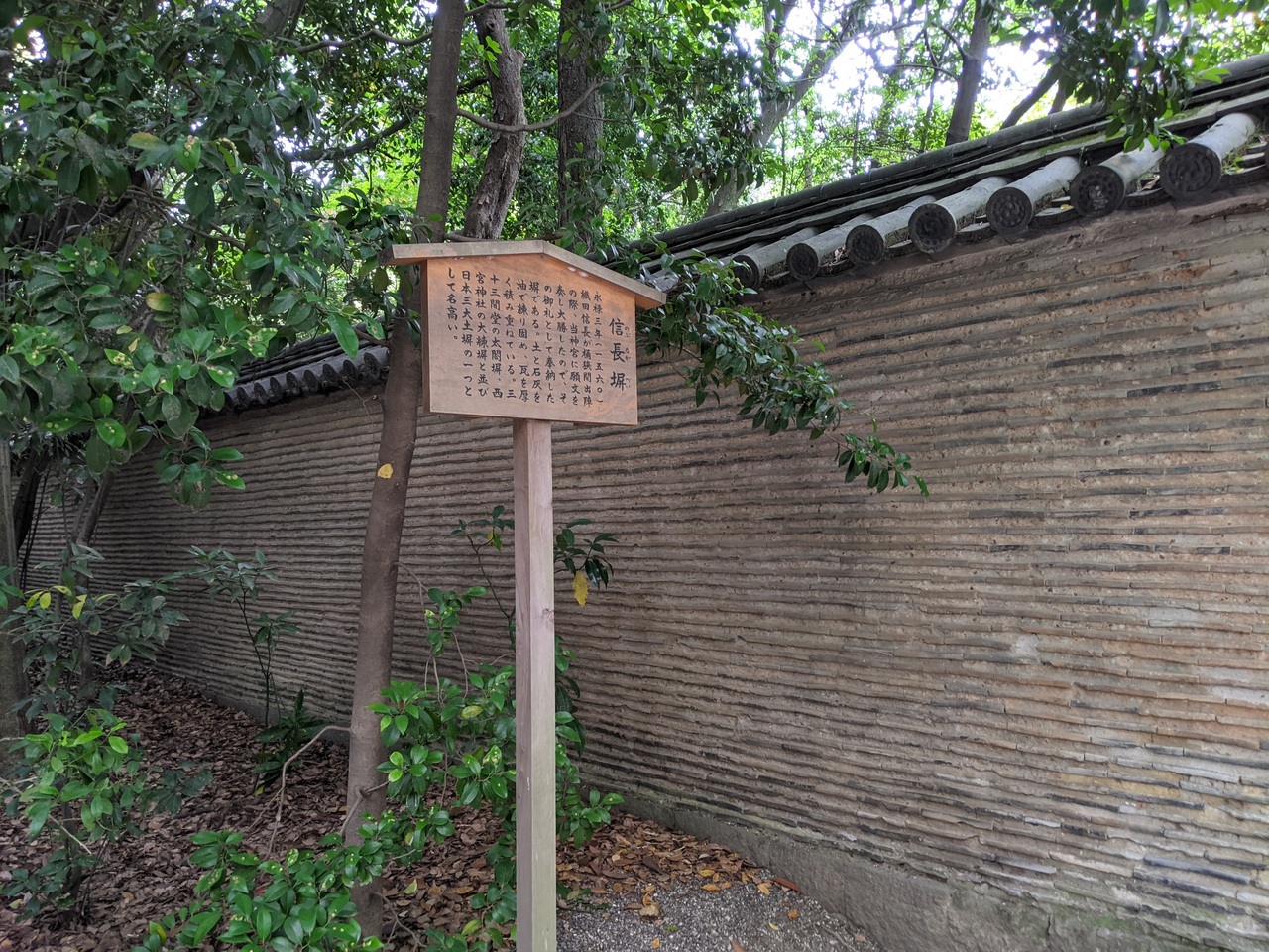信長塀は、熱田神宮の境内にありました。織田信長が桶狭間の戦いに出陣の際に熱田神宮で戦勝を祈願し、勝利を収めたことで奉納した土塀らしいですが、400年以上、風化することもなく現存していることを知り驚きました。日本三大土塀のひとつ。
