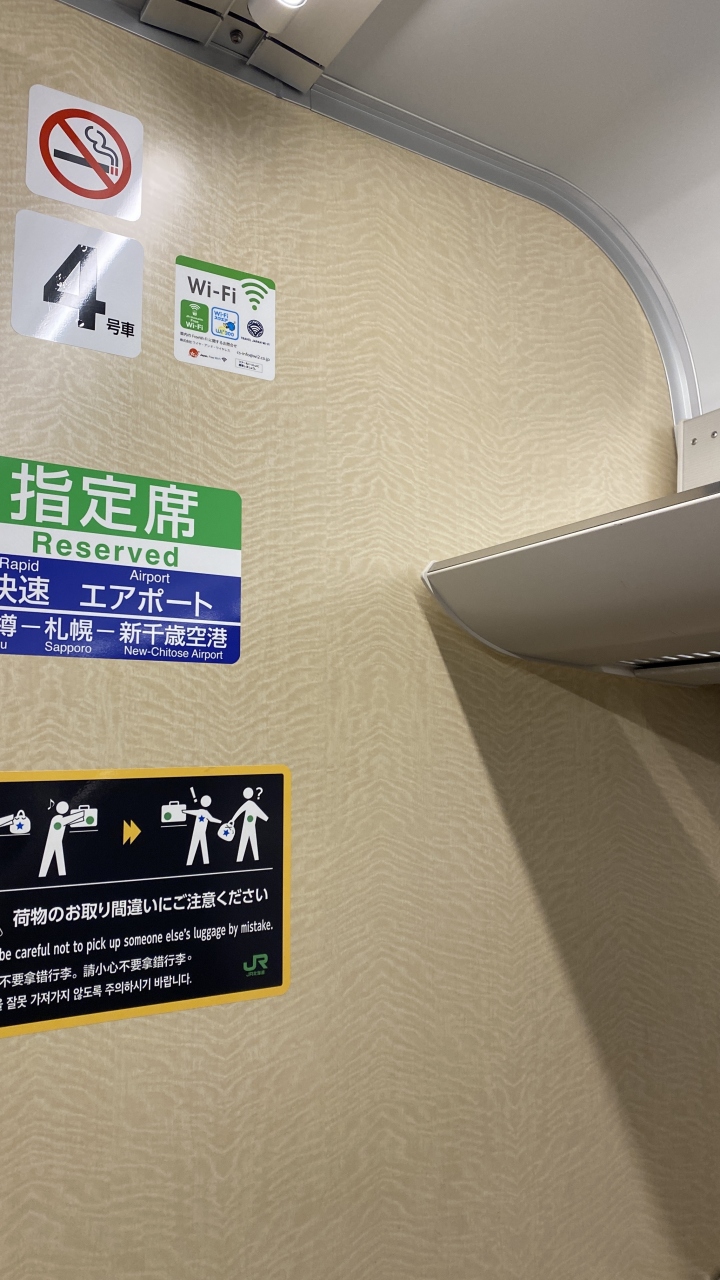 新千歳空港からのアクセス電車の快速エアポート。特急料金などがいらないので割安で移動できますし、北海道の公共交通機関としては異例の本数の多さ。駅の場所も新千歳空港は割合便利ですし、エスカレーター、エレベーターも完備しているので使いやすいです。