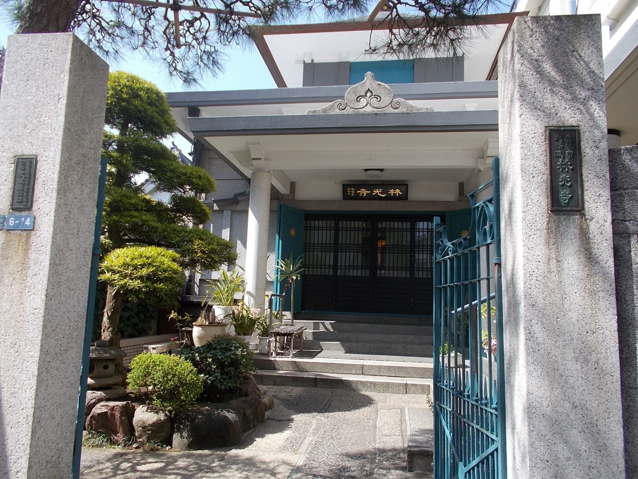 この林光寺は上野の東上野にある寺の一つです。両隣も寺です。地下鉄東京メトロ銀座線稲荷町から北東に5分強の場所にあります。この寺は真宗大谷派のものです。17世紀後半に創建されました。一時下谷に移築したのです。この寺の本堂は新しいものです。特徴的なのは屋根の上に櫓のような作りになっています。色彩も印象的です。