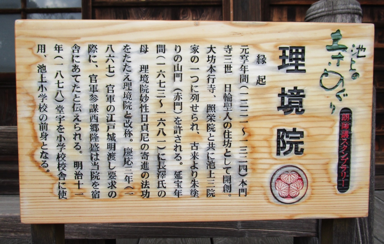 理境院は、池上本門寺3世日輪聖人の住坊として久成院と称して創建され、延宝年間(1673-1681)に檀越長澤氏の母理境院妙性日貞尼の寄進の法功をたたえ理境院と改称したそうです。
