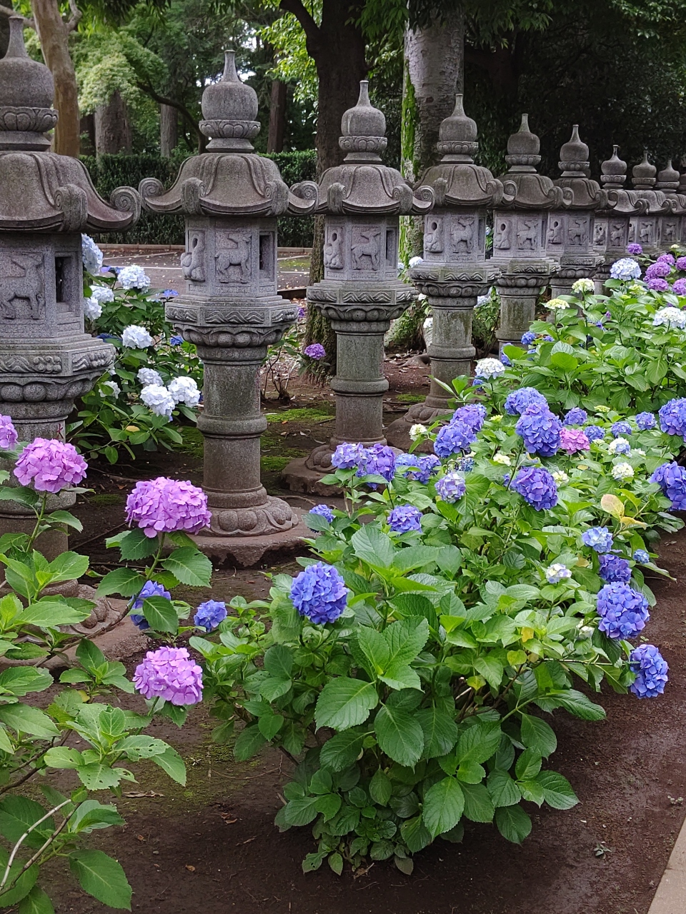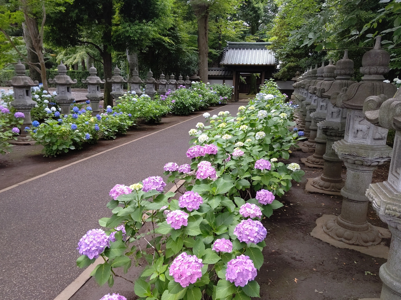 妙法寺の本堂を抜け、裏門を出ると紫陽花の参道です。