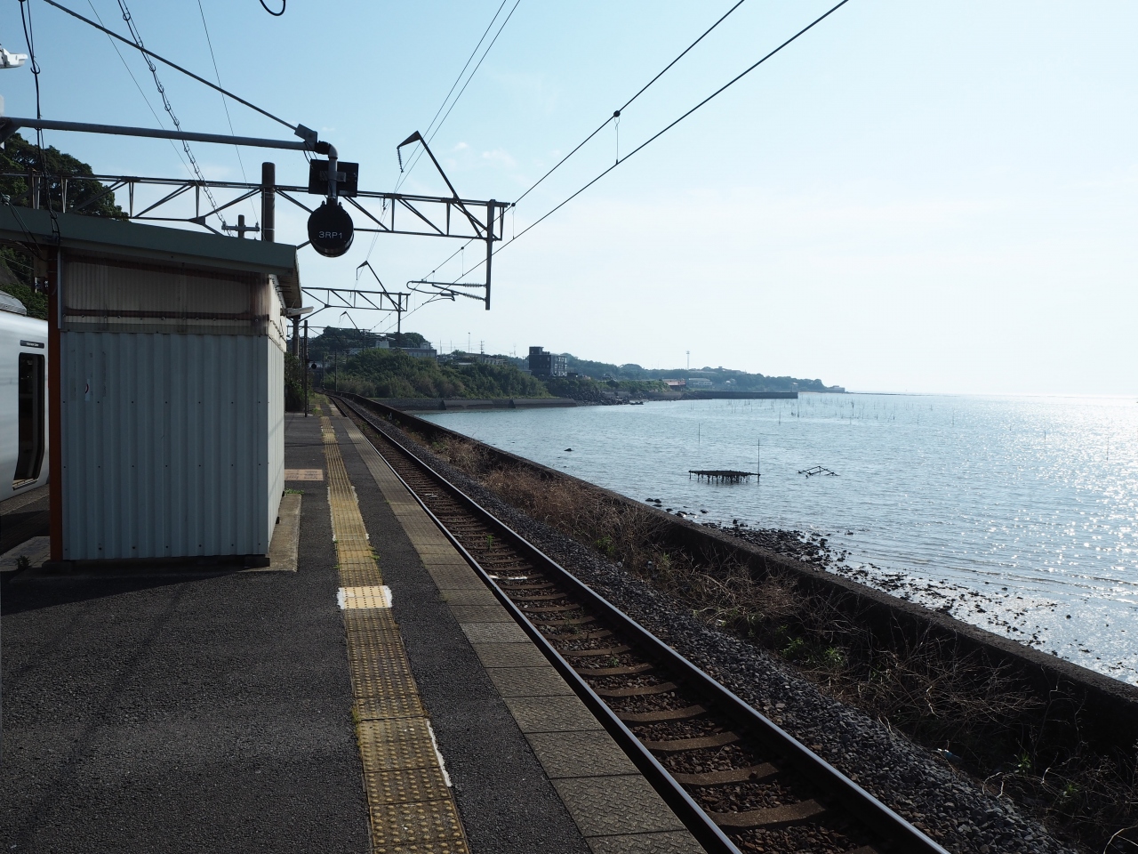 長崎本線の長崎駅と佐賀駅のあいだを利用しました。長崎から諫早まではある程度混んでいましたが、諫早から先は乗客が減り、車内は閑散としていました。諫早を過ぎたあたりから肥前鹿島までのあいだは有明海沿いを走り、のどかな美しい海辺の景色が見えます。有明海の干潟もみえます。この路線はのどかなローカル線の旅の感じがします。