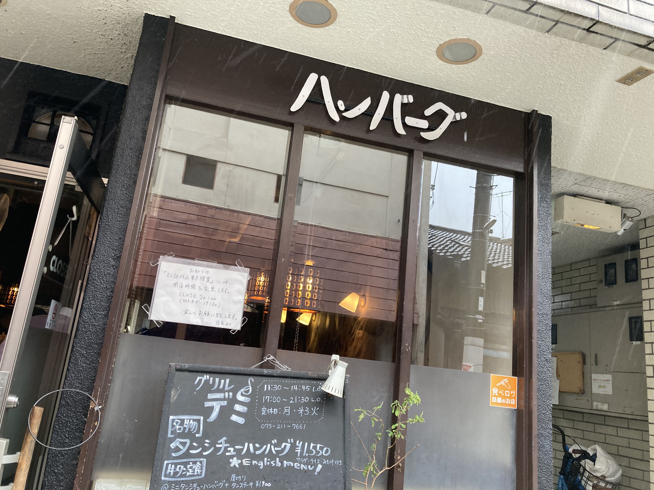 京都の中京区、烏丸二条にある人気のハンバーグのお店です。ずっと以前に行って美味しかったので、又行きたかったのですが、いつも行列で入れず、やっと念願叶いました。雨の日でしたが開店時間前にもう並んでいて、やはり一人で来てる人が多く、以前と違うのはそれ位で味は、もっと美味しくなってました。ビジネスランチが680円で頂けて、極上の味わいでした。ランチに一緒にいった友人達と、又いつか来れる日を思い描き、その日を楽しみにしていこうと、味わい深かったです。