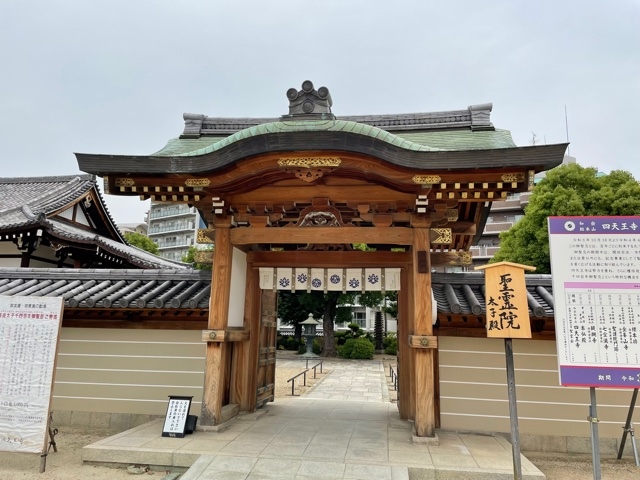 聖徳太子をお祀りしているお堂(天王寺のご廟)で、正式には「聖霊院(しょうりょういん)」といいます。太子信仰の中心となっています。前殿には十六歳像・太子二歳像・四天王が奥殿には太子四十九歳像(1月22日のみ公開の秘仏)が祀られています。