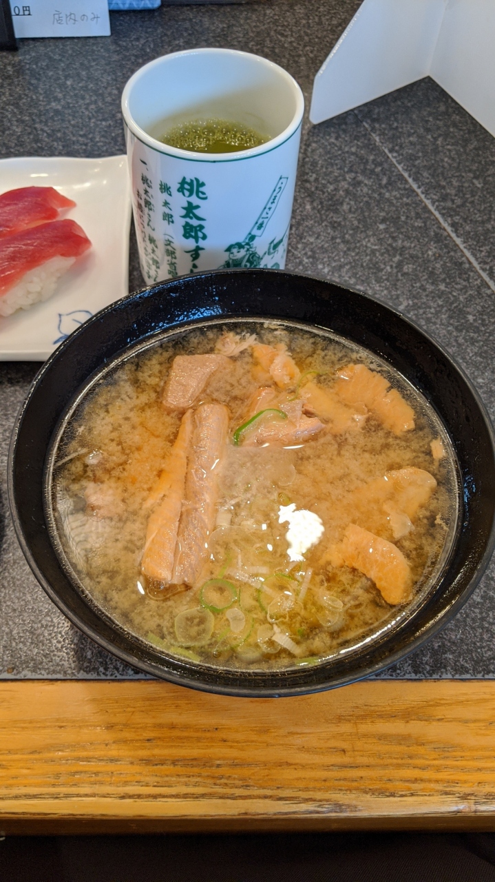 13年ぶりにお邪魔しました。近くには駒沢公園があり、東急東横線の都立大学駅前から歩いて15分程の住宅街の中にあるとても環境の良い場所にあります。桃太郎すしさんはカウンター内に板前さんが3から4人程いて、注文すると威勢よく手際よくお寿司を握ってくれます。握りは100円~600円位で、他に一品物など多くのメニューがあります。中でもあら汁(300円)は絶品で昔から絶対注文しています。