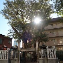 ループバスの北野異人館で降りて、上りを直進して右手。入口から見ると、松の木?から木漏れ日が差し、木の元には霊石?があり、これはお参りせねばという雰囲気。奥の方に入って行くと、霊石生不動明王が祀られているので、石に刻まれた御真言を唱えながらお参り。後で調べたところでは、「北野の三本松」として知られた目印・憩いの場があったが、大正初に一本が切られ、昭和7年の台風で二本目が倒れ、残る一本も昭和13年に切り倒されたとのこと。