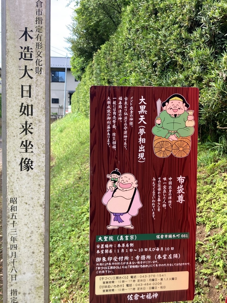布袋様の石像があるほか、木造の大日如来像、そして、佐倉藩お抱えの刀工で幕末の頃の人、細川忠義のお墓もある。