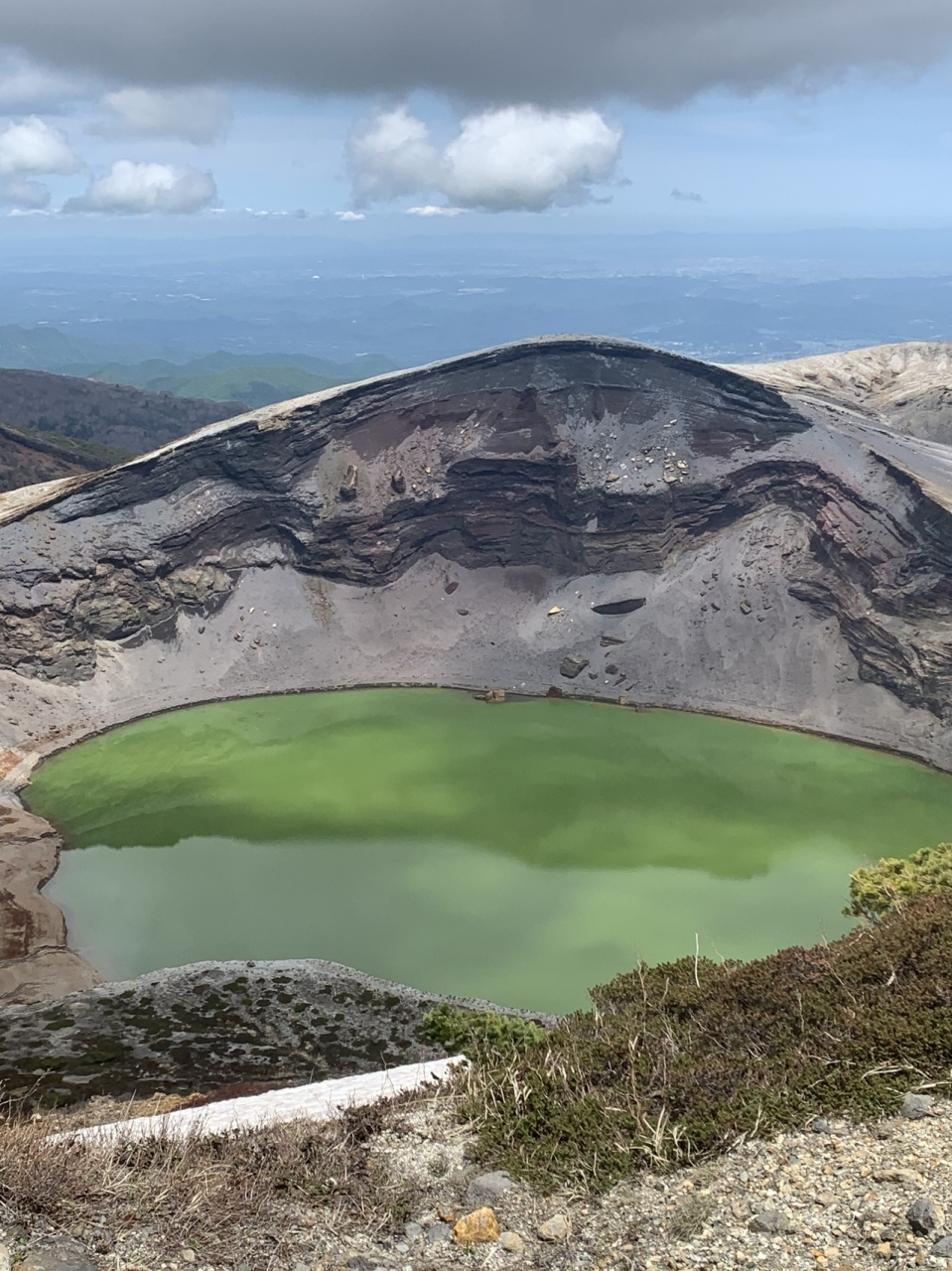 蔵王の山頂にある火山の噴火で出来た火口湖のことで、季節や時間、お天気、太陽の当たり方によって色を変えるとても神秘的な湖です。一日目に見たときはお天気が悪く何ひとつ見えませんでした。二日目に快晴になり太陽の当たり方によってとても綺麗に色を変化させました。遊歩道があり比較的楽に周辺を歩くことが出来ますが大きなごろごろ岩もあり歩きやすい靴が必須です。