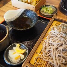 ざる蕎麦は出雲そばと十割そばから選べる様になっていたので、十割そばにした。