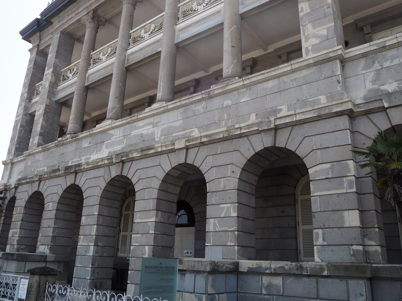 路面電車の大浦天主堂電停を降りて海の方へと歩くとすぐにあります。中華レストランの四海楼の裏手です。建物は重厚な石造りの建物で歴史あるものです。1階は銀行のカウンターの様子を残しています。この銀行は現在もHSBC銀行として世界的な大手銀行として世界で営業しています。当時は長崎が世界的に注目の場所であったということでしょうか。