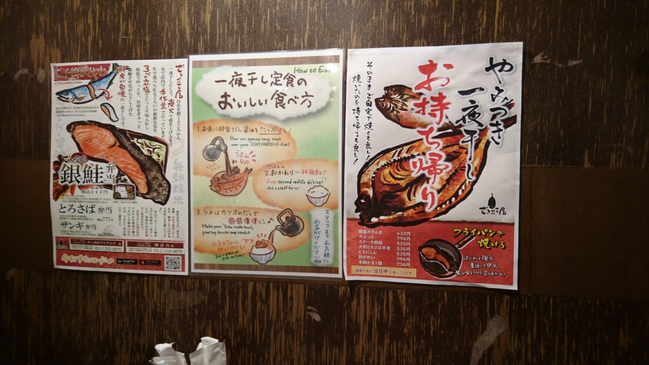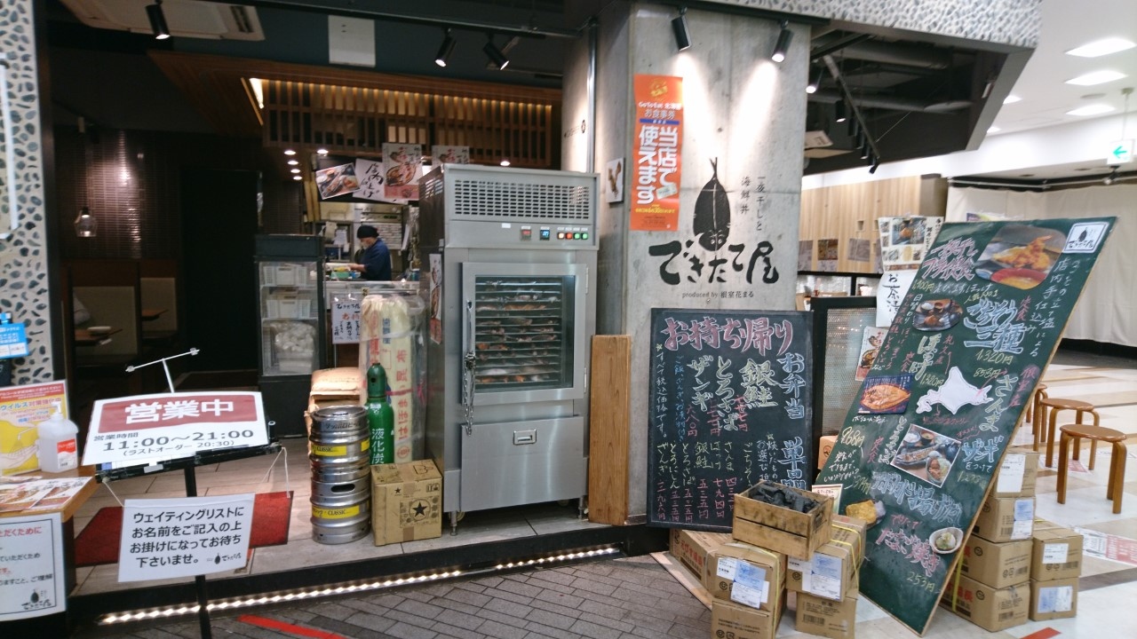 久しぶりに訪れたできたて屋さん、一夜干しの魚がおいしいお店です。北海道を代表する回転ずしの花まるさんがやっている焼き魚のお店です。おいしくないはずがありません。お店の前には、自家製の一夜干しが機械に入って並んでいます。どれもおいしそうです。