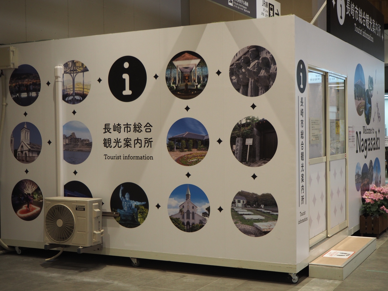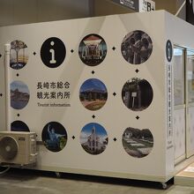 長崎駅の改札を出てすぐ右側に長崎市総合案内所はあります。工事用のブースのような建物です。観光用のパンフレット、地図を手に入れて観光がスタートできます。また路面電車の1日券などもあります。現在の案内所は仮の建物のようで、来年の長崎新幹線開業に合わせての長崎駅の大工事中なので、また別の場所にきちんとしたものができるのでしょうか。