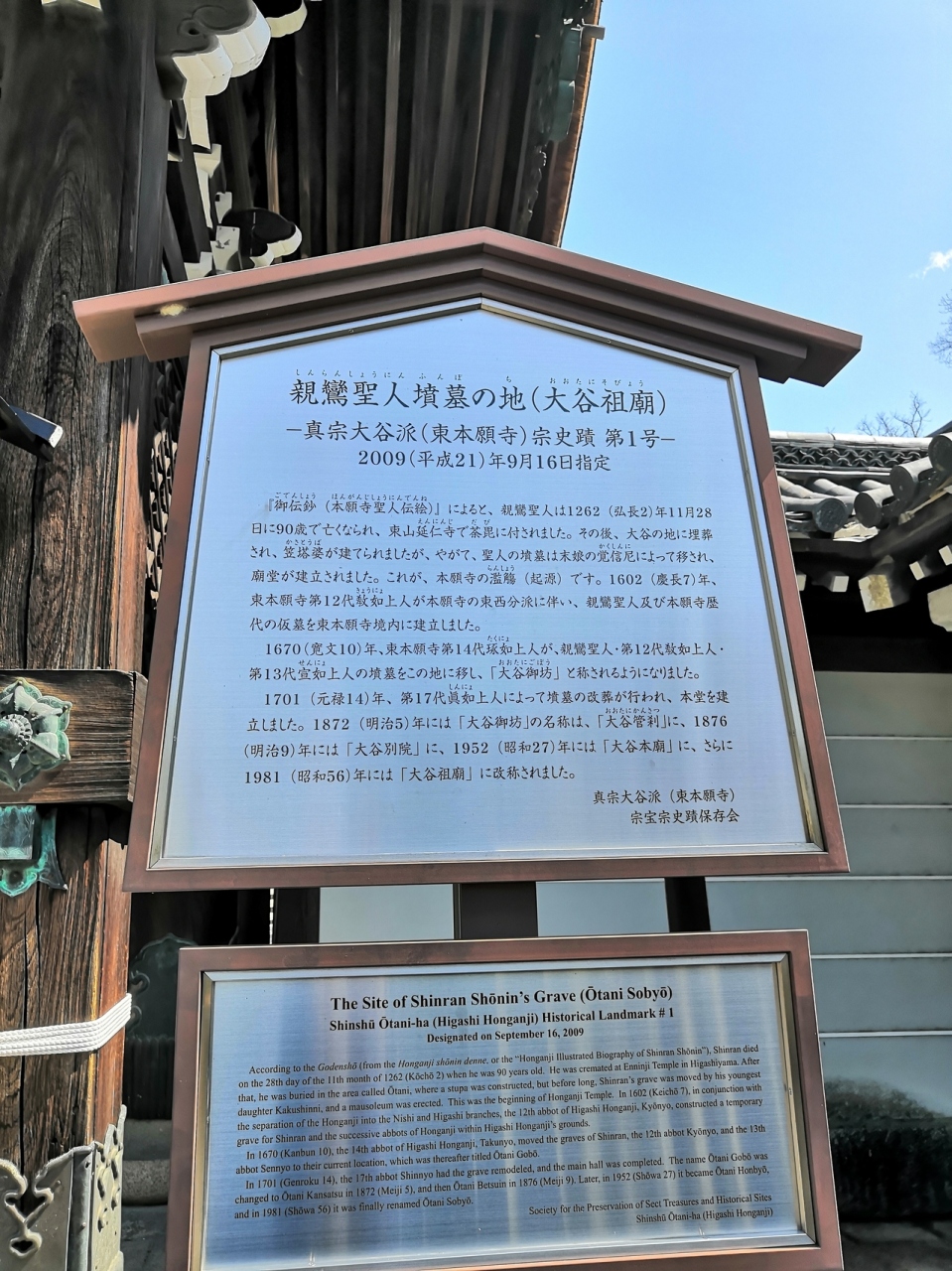 浄土真宗の宗祖である親鸞聖人の墓所です。親鸞聖人の遺骨はもちろんですが、本願寺歴代の遺骨や真宗に流れを汲む人の遺骨も収められています。やや高台にあるので、徒歩の場合は結構階段は登らないといけないですが、やはり厳かさは感じました。