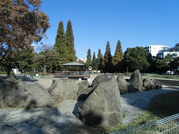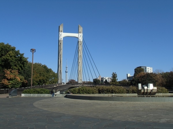 とても広い公園で、仙台堀川を挟んで南北に分かれ、その間を大きな陸橋が繋いでいます。