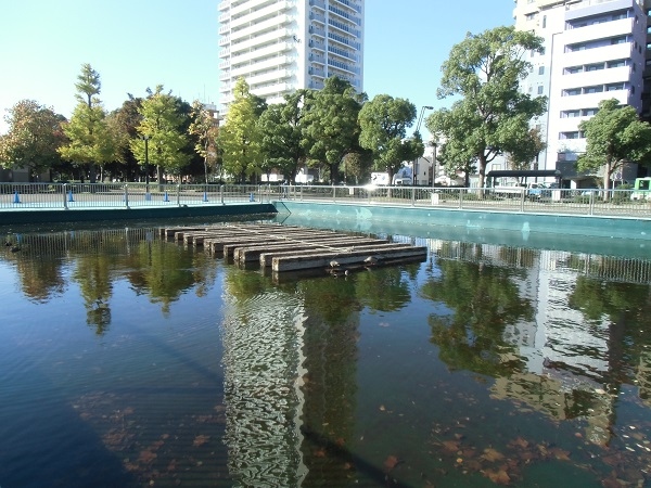 園内の池に木材が浮かんでいたので調べたところ、こちらで毎年10月に角乗りが披露されるそうです。