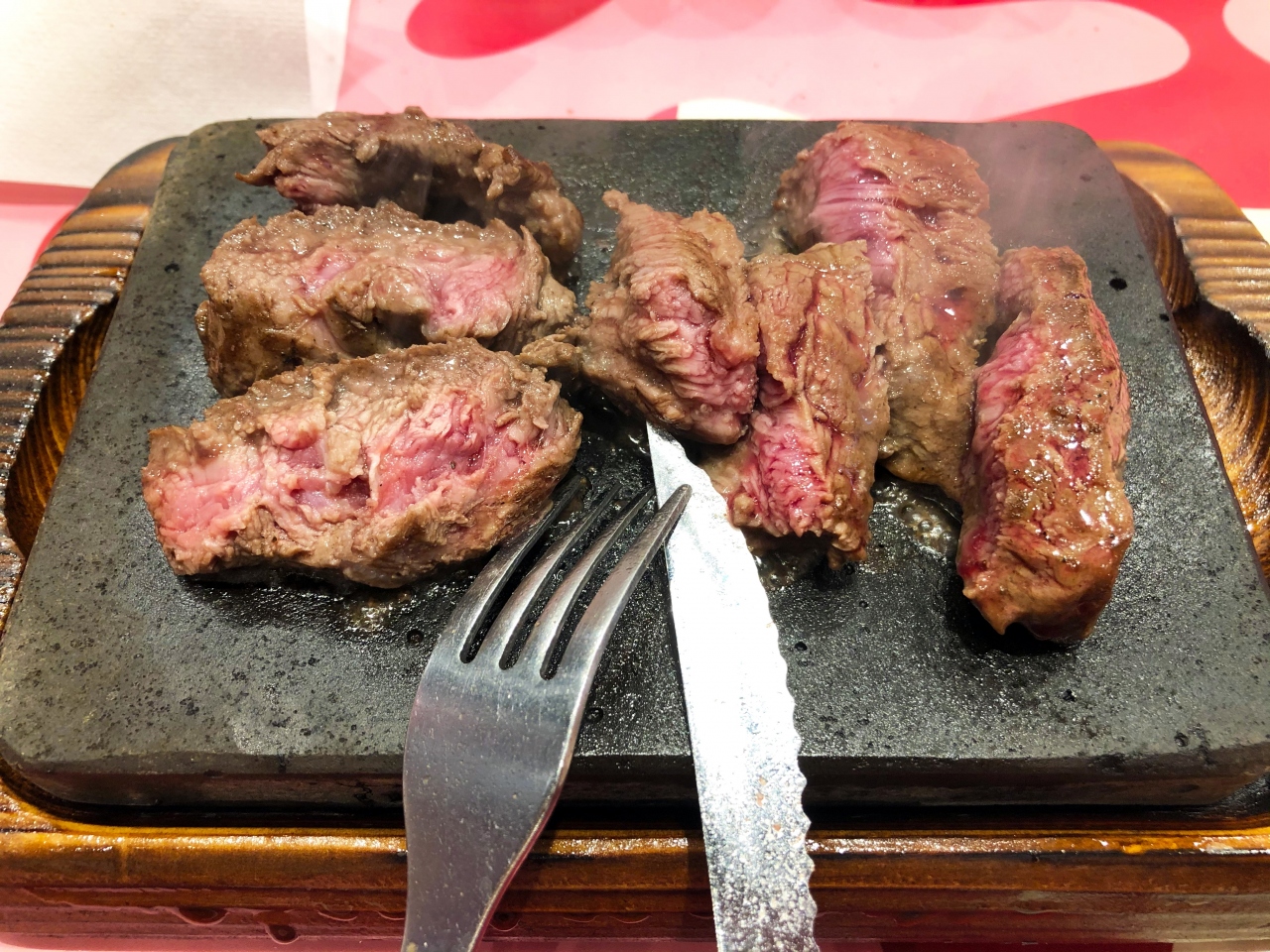 This is a steak chain restaurant where you can eat steak at a reasonable price. It's more like a fast food restaurant than a place where you can enjoy a meal with your family or friends while talking. For this reason, there are many counter seats for one person as well as table seats.