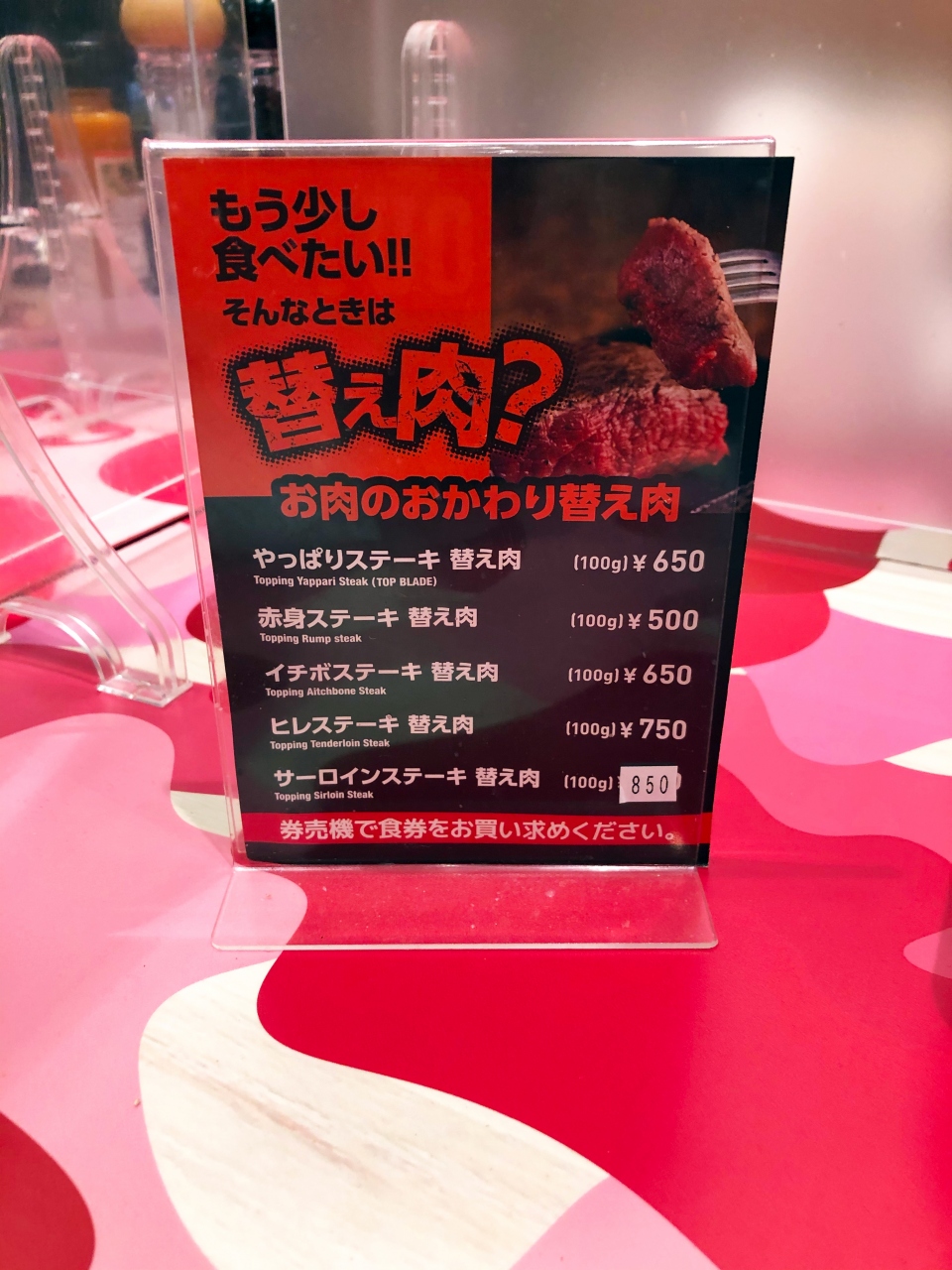 Perhaps because we used the restaurant at a time when the number of people was relatively small, the staff was generally friendly and helpful. You buy meal tickets from the ticket machine near the entrance, and you can choose not only the part of the meat, size, and degree of cooking, but also the side dishes. However, there are so many types of them that if you are not familiar with them you will be quite confused about which one to choose. Perhaps knowing this, there was a staff member stationed next to the ticket vending machine to explain how to operate it. They also explained to us how we could save money by choosing the right one, and we were generally impressed with their customer service.