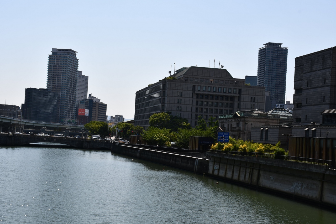 京阪電車中之島線ができてから、大江橋駅から中之島駅まで堂島川沿いに遊歩道が整備されました。堂島川左岸には大阪市役所や日銀の支店や公会堂など、歴史的な建築が建ち並んでいます。飲食店などもより取り見取りです。