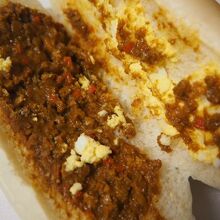 玉子サラダが、カレーのスパイスの辛さをまろやかにしている感じ。