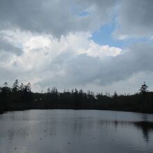 周囲の山並みは、ダケカンバなどが芽吹いてライトグリーン色が、針葉樹のダークグリーンに混じって見えていましたが、山肌には白い雪もまだ残っていて、足元にもクマザサの影に、泥で薄汚れて黒っぽくなった雪がありました。