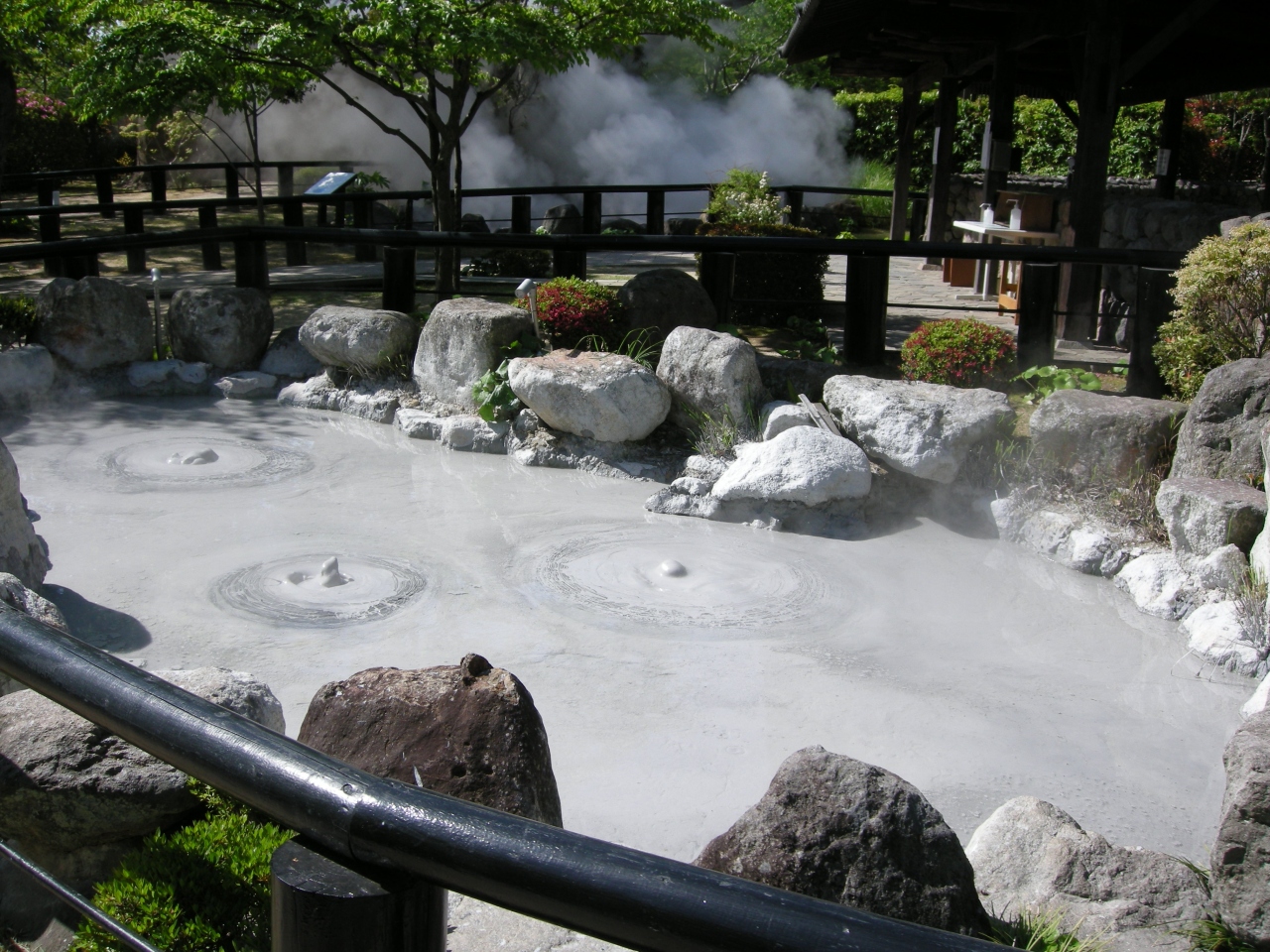 別府地獄めぐりの一つです。海地獄の隣にありますので、あわせて観光できます。コバルトブルーの美しい海地獄とは対照的に、こちらは灰色の熱泥がボコボコと沸騰しています。いかにも地獄というかんじです。足湯施設もありますが、ちょっとぬるかったです。