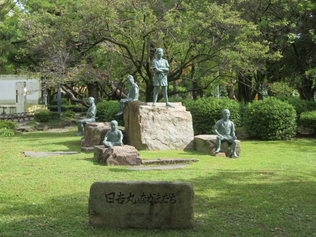 何といっても、こちらには、秀吉の生誕を記念して建てられた豊国神社があります。これだけでも秀吉の公園という色合いが強いのですが、秀吉の幼名から取った日吉丸とその仲間たちという銅像群まであります。秀吉アレルギーの方にはきついですが、池の風景は綺麗ですよ。
