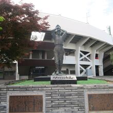 地元の英雄であり巨人軍で活躍したスタルヒンを讃えるモニュメントが旭川市内にはいくつかありますが、名前がついたスタルヒン球場には銅像が建てられています。ロシアで生まれ旭川市で育ったようで生家の近くにはスタルヒン通りと名前も付いています。
