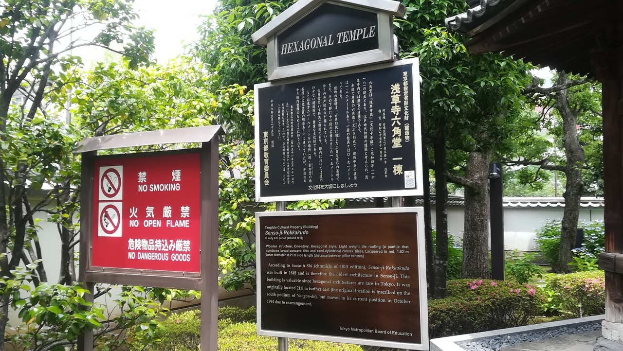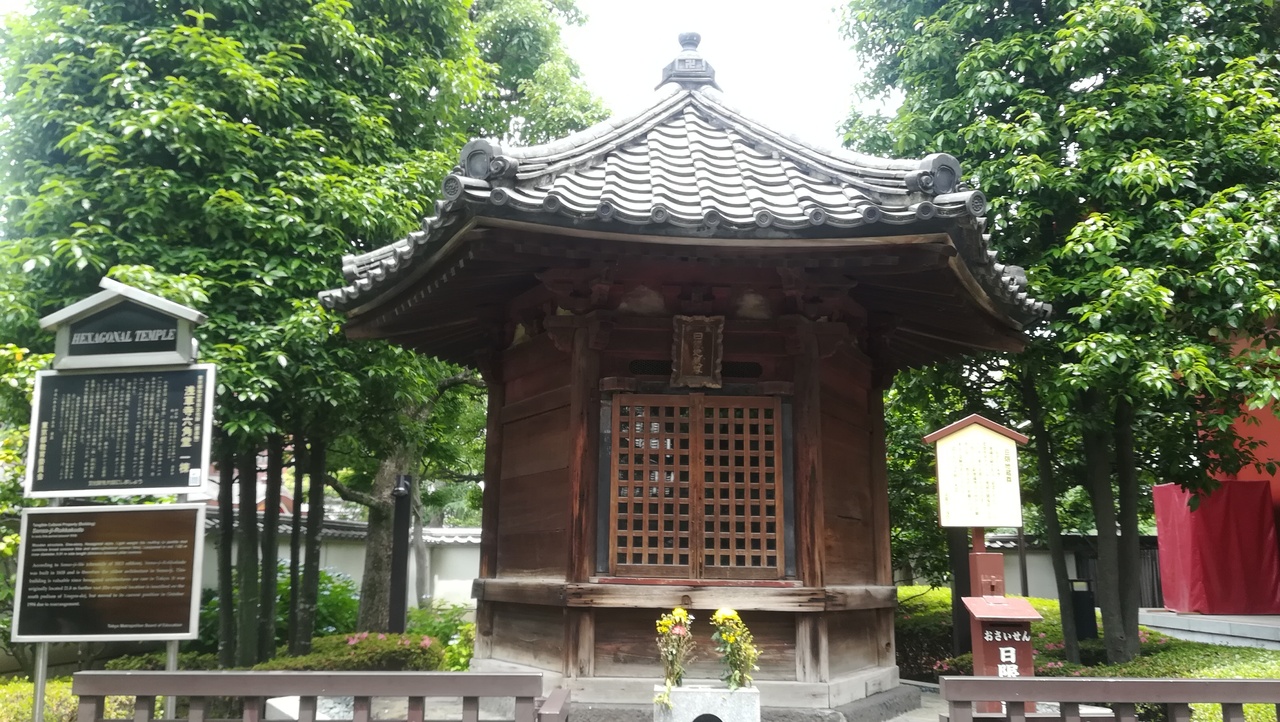 浅草寺六角堂は、1618年、掘った井戸の上に建っていることを示す記述があり、古い建築様式も採用されていることから、浅草寺内に現存する最古の建造物と考えられています。建物の底部は、六角形状に廻した木製土台と基礎石で支えられ、更に、その下部に11 段の石積みをした深さ1.5m余りの井戸状の穴が堀られているようです。