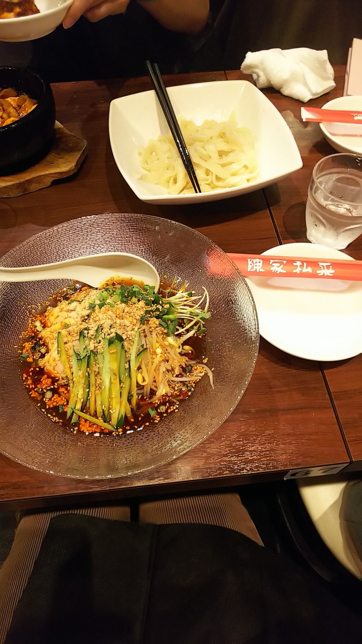 何を頼んでも美味しい。中華料理は高級じゃなくてもあまりハズレがない。ここは辛いものが得意。冷やし中華と麻婆の刀削麺、餃子。辛い麻婆豆腐に刀削麺が絡んで美味しい。今年最初の冷やし中華も辛くて美味しい。